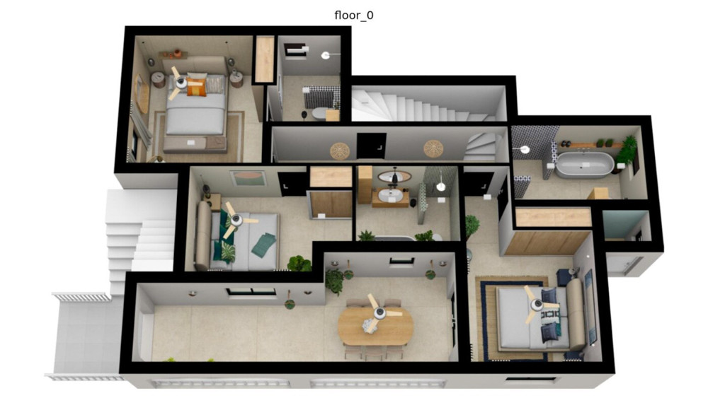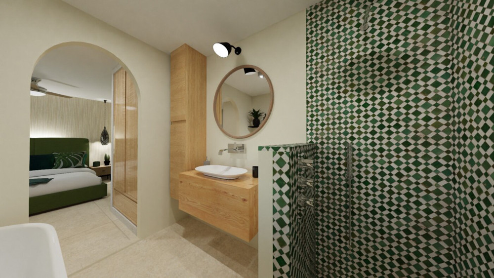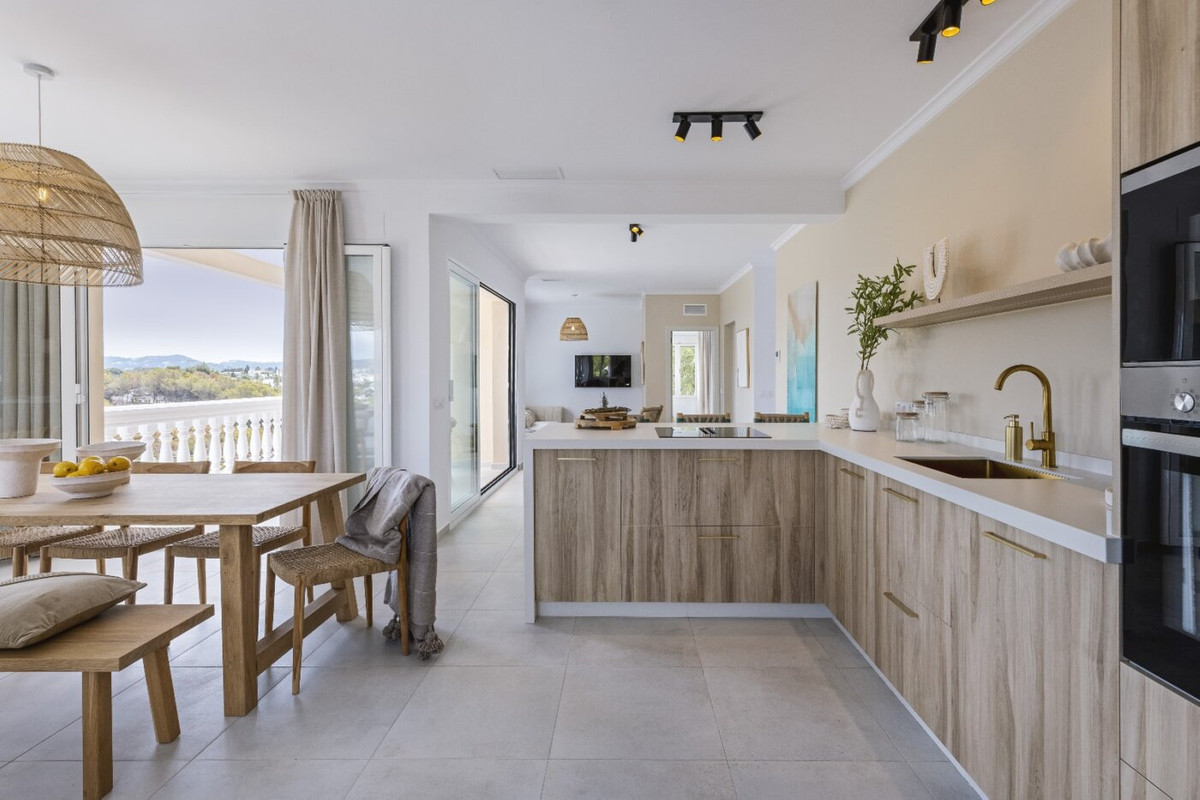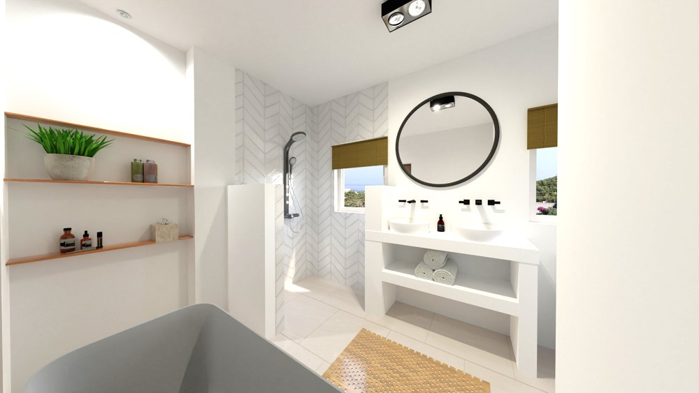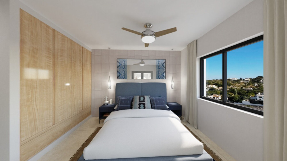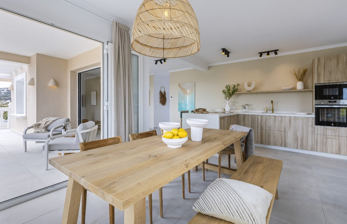 This villa is located in a quiet neighbourhood a very short distance from the beach, supermarket, schools, etc. There are views over Jávea bay from all the terraces. In total there are 4 bedrooms and 3 bathrooms spread over two floors. The first floor consists of a spacious living-dining room with an open kitchen and a double bedroom with an en suite bathroom. From the living room, there is access to a large partly covered terrace through large glass windows. The ground floor consists of a corridor in which there are two more double bedrooms and two bathrooms. At the end of the corridor is a third double bedroom with an en suite bathroom. There is also a large covered terrace on this floor. A few steps down is the swimming pool with sun terrace. The villa is air-conditioned and has a parking space down the street. The villa is currently being renovated and furnished. The furniture is not included in the price.